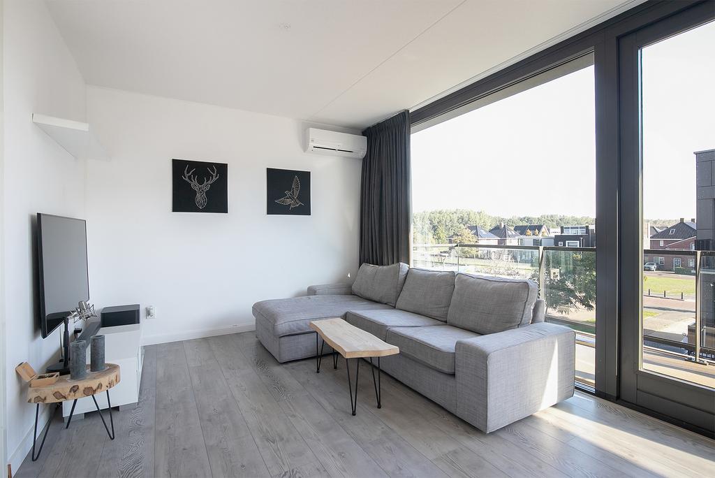 Het woning brede balkon is gelegen op het noordoosten, doordat het appartement een hoekligging heeft is er een mooi uitzicht richting het bos.