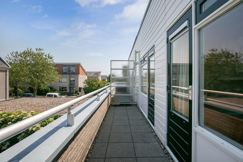 Vanuit de overloop heeft u toegang tot het riante dakterras aan de voorzijde van de woning. Er is hier een heerlijke zit gecreëerd en u heeft een schitterend uitzicht. Tot in de late uurtjes kunt u hier heerlijk vertoeven. Er is hier ook een buitenkraan aanwezig. Heeft u trek in iets lekkers of wilt u lekker op het terras dineren? In de slaapkamer is een keukentje geplaatst zodat u niet naar beneden hoeft.