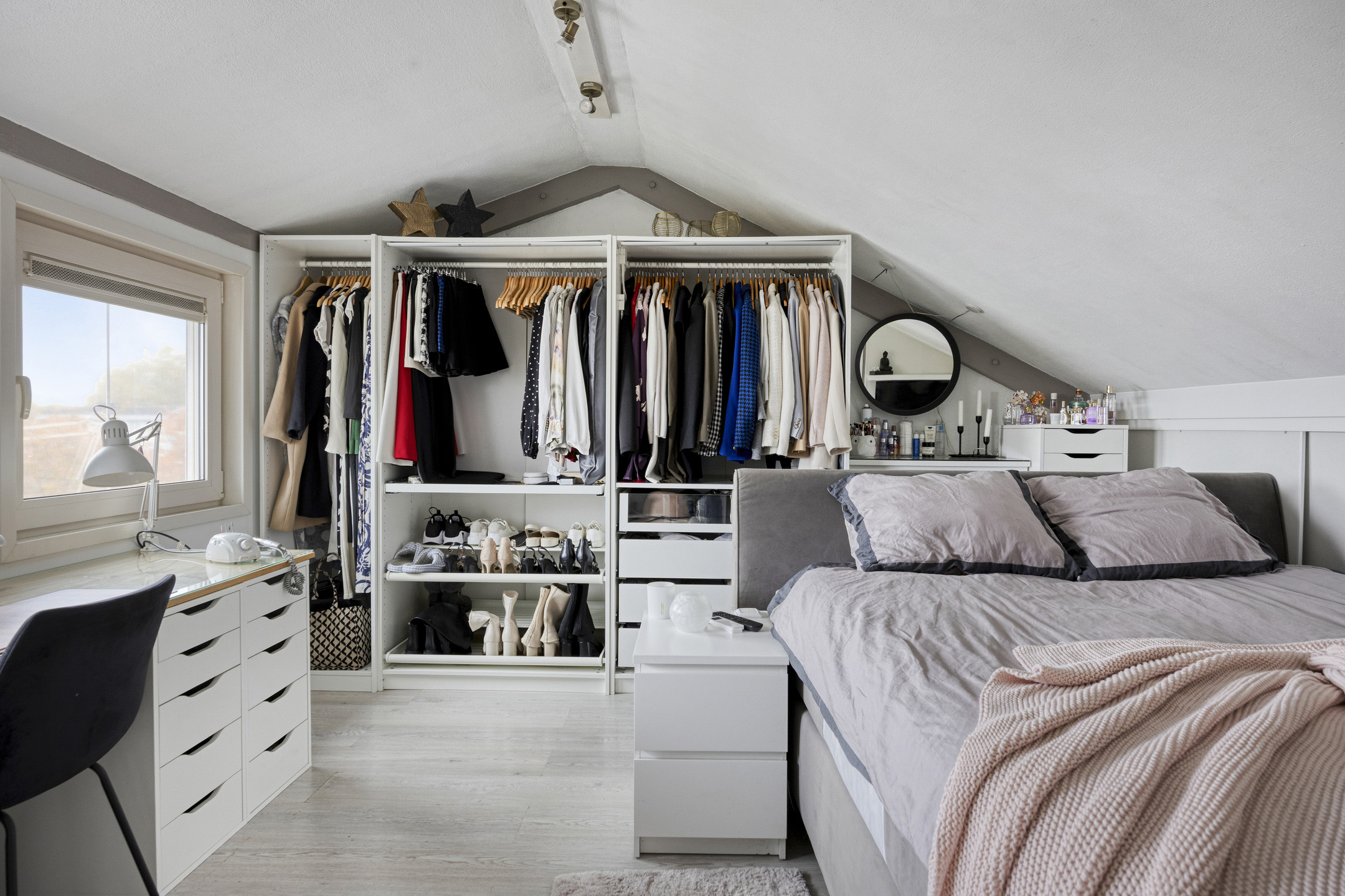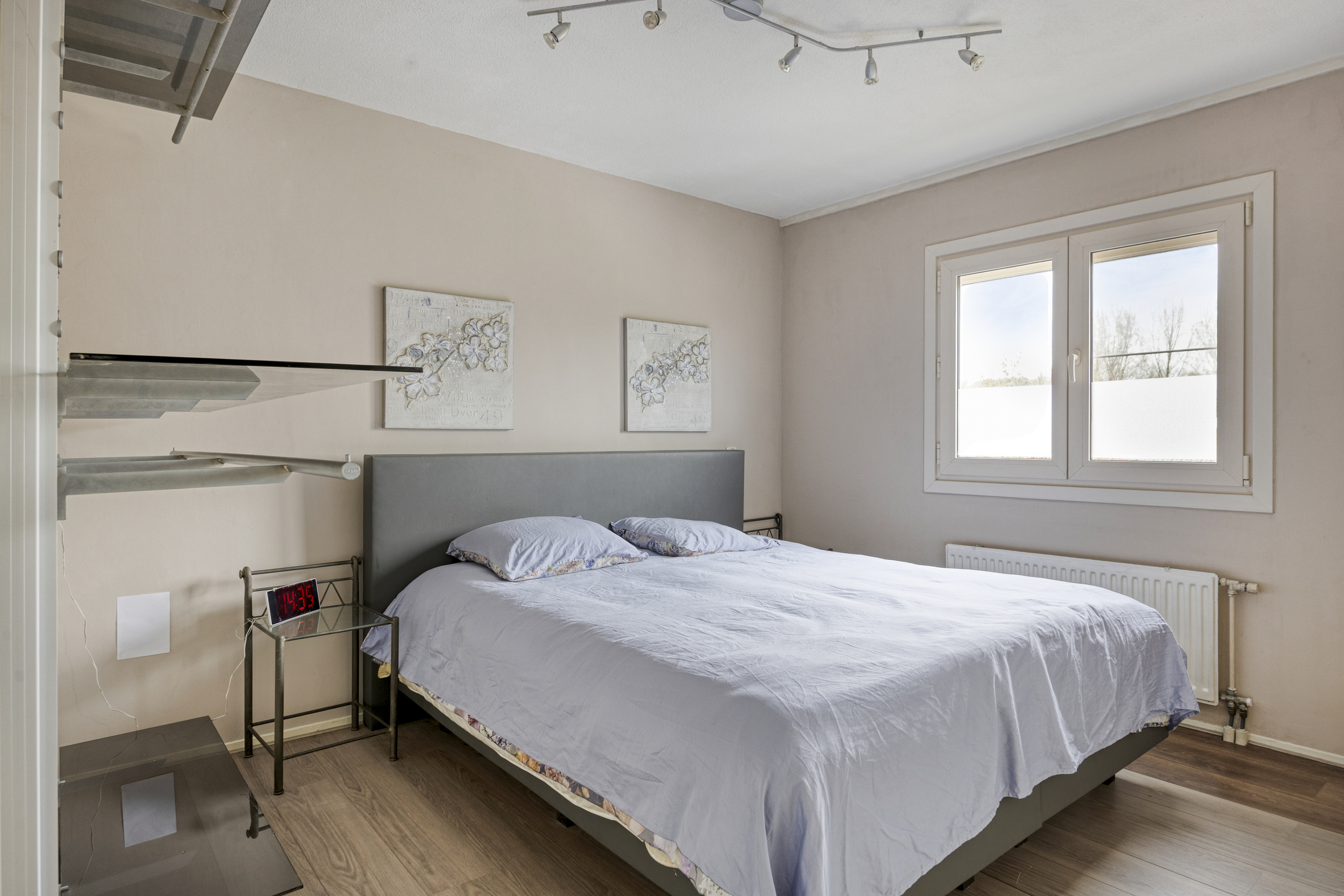 Vanaf de overloop heb je toegang tot drie slaapkamers van verschillende afmetingen. De twee grootste kamers zijn voorzien van rolluiken (2024) en alle vloeren zijn afgewerkt met laminaat.