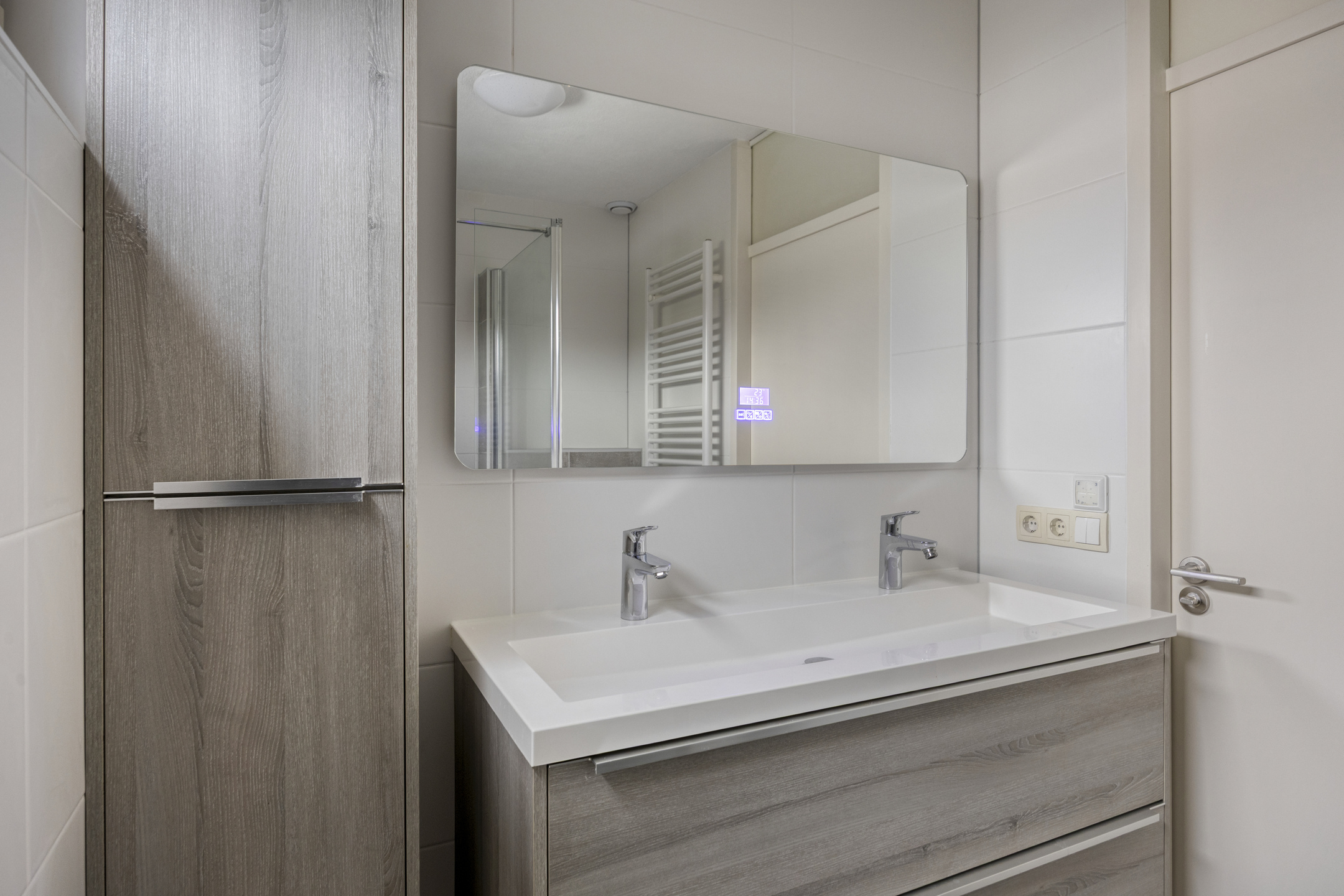 De luxe spiegel met bluetooth, verlichting, muziek en verwarming maakt het geheel helemaal af — hier geniet je elke dag van een spa-gevoel in eigen huis.