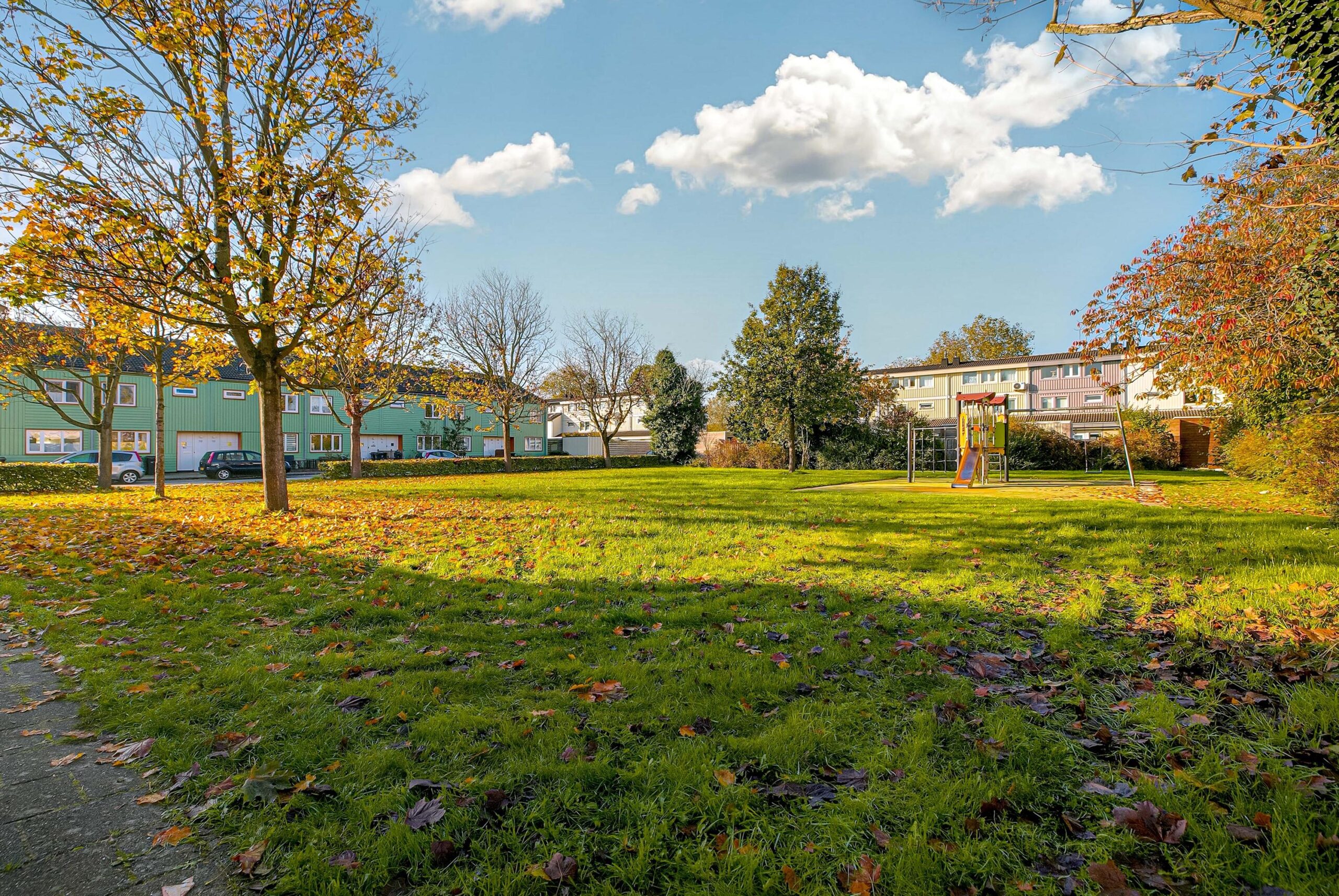 Vanuit de achtertuin heb je direct toegang tot een groen speelveld met speeltoestellen, ideaal voor gezinnen met kinderen!