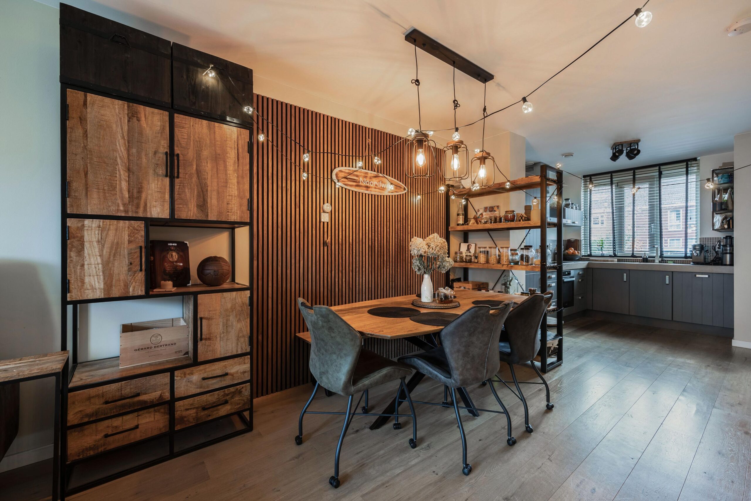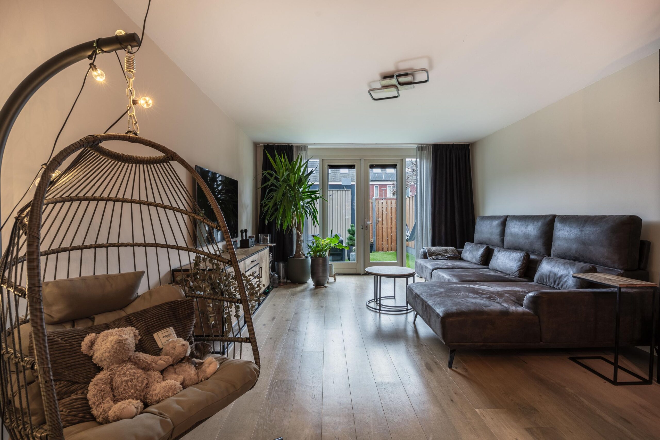 De uitgebouwde woonkamer is heerlijk diep en biedt volop ruimte voor een royale eethoek en een comfortabele zithoek. Via de openslaande deuren staat u direct in verbinding met de achtertuin – ideaal voor binnen-buitenleven.