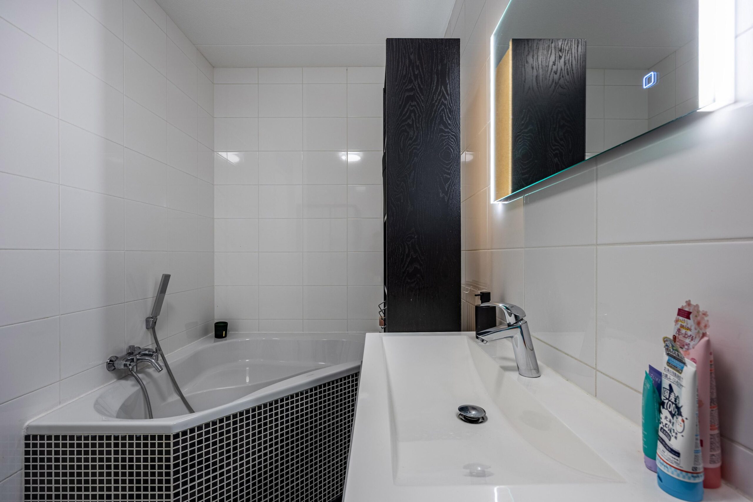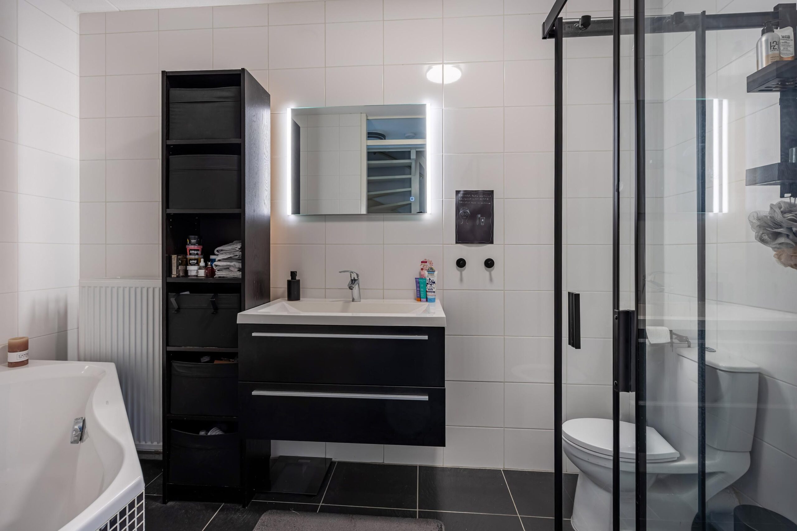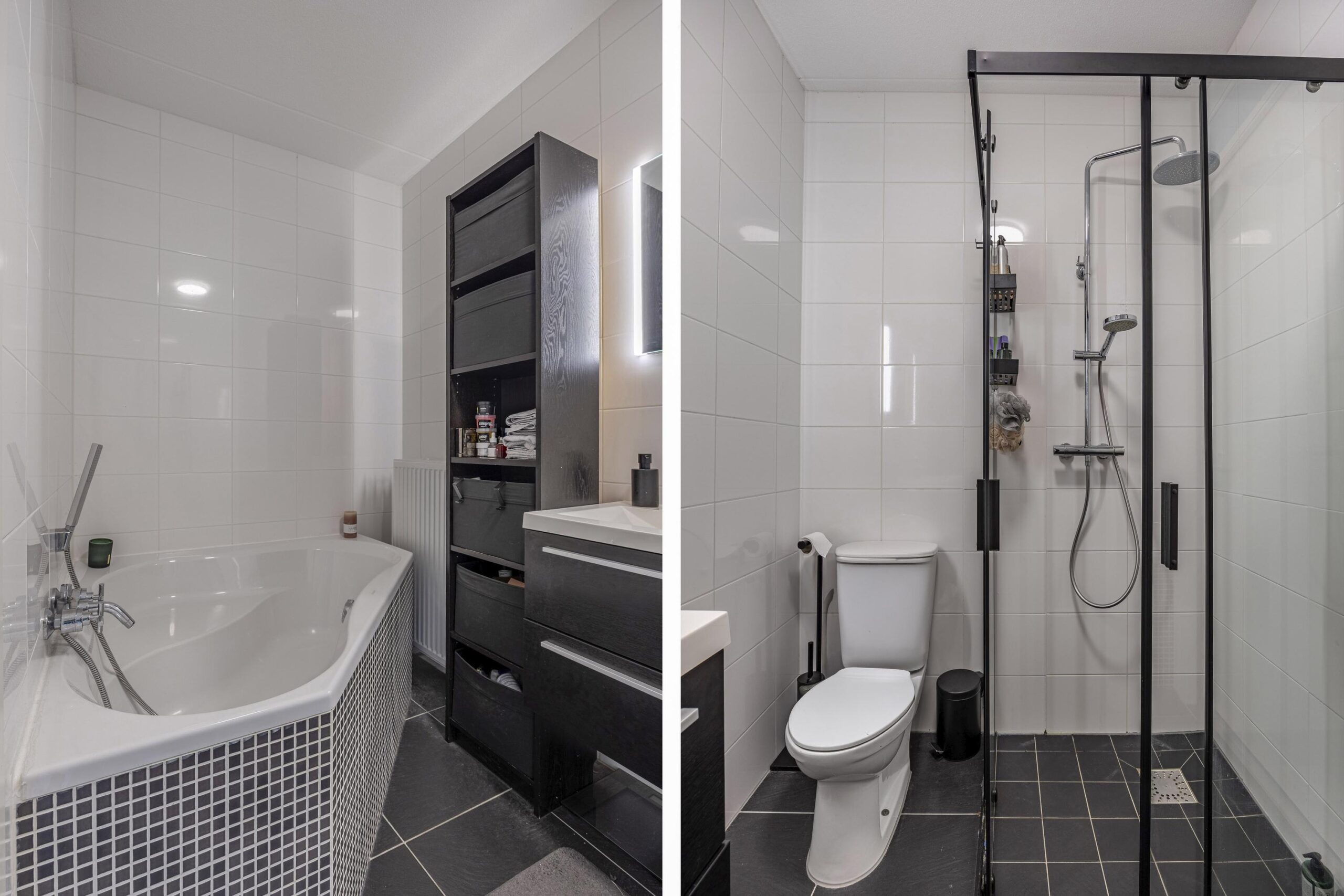 De overloop geeft toegang tot de badkamer en twee ruime slaapkamers, gelegen aan de voor- en achterzijde. De badkamer is volledig tot aan het plafond betegeld en compleet uitgevoerd met een ligbad, douchecabine met hand- en regendouche, een groot wastafelmeubel met verlichte spiegel, een badkamerkast en een tweede toilet. Ventilatie verloopt via mechanische ventilatie en verwarming middels een radiator. De slaapkamers zijn afgewerkt met een nette laminaatvloer en voorzien van HR++ beglazing.