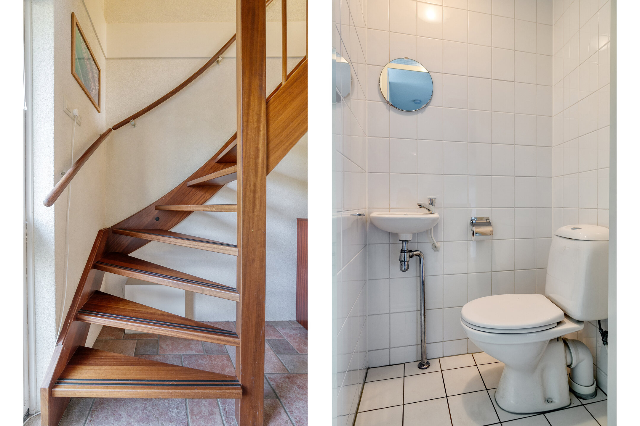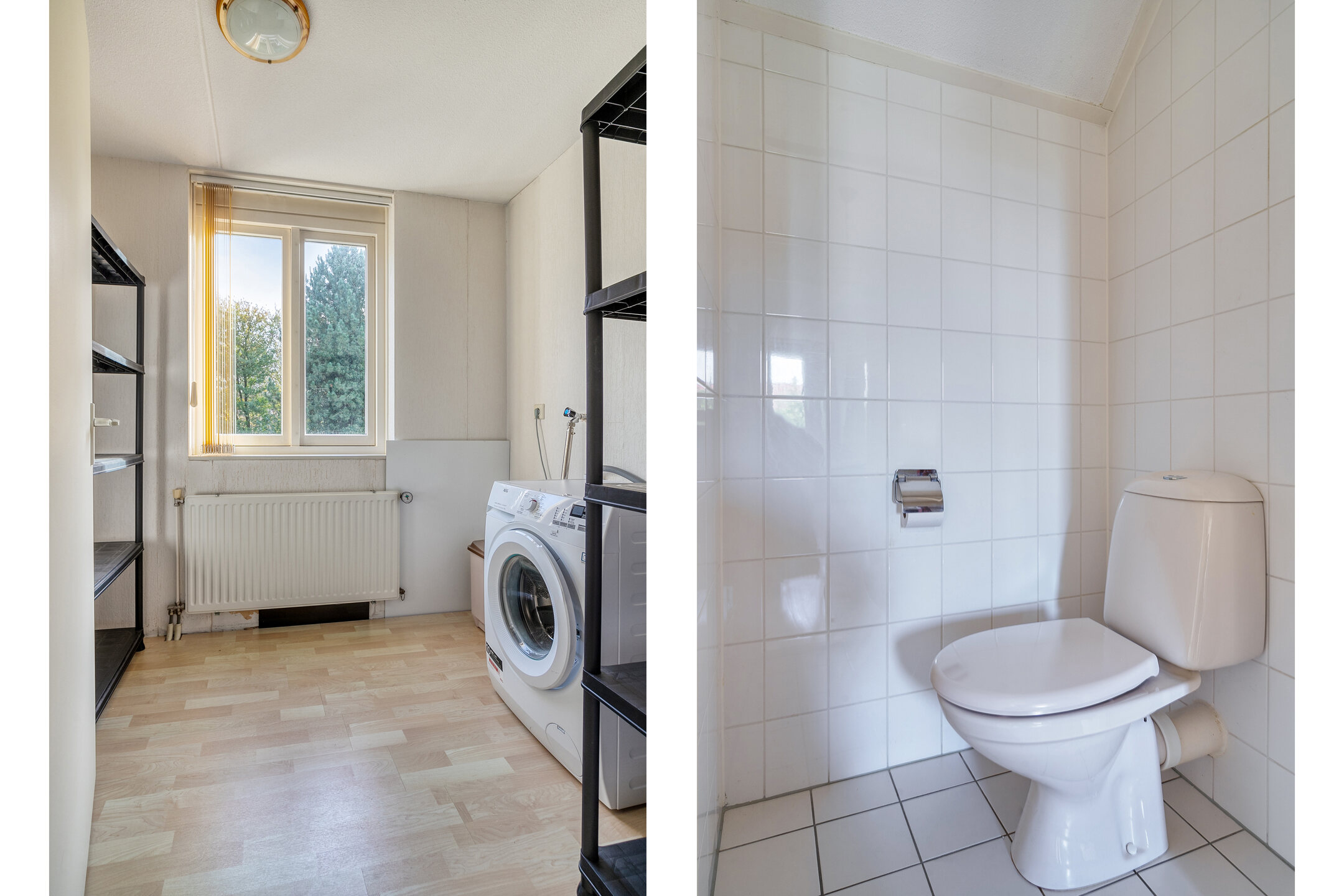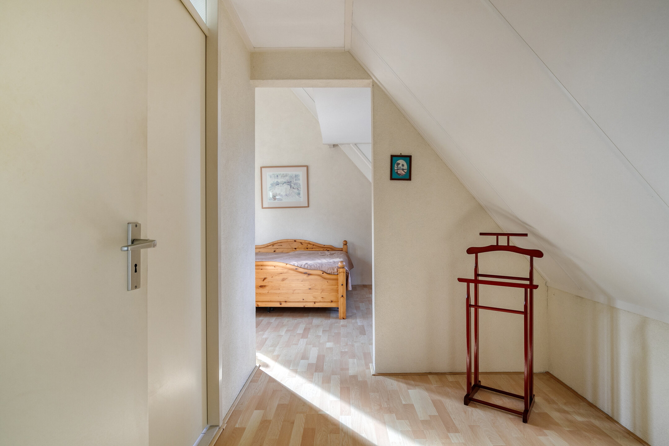 De overloop leidt naar drie prettige slaapkamers, allemaal voorzien van een nette laminaatvloer. Aan de achterzijde vindt u een aparte wasruimte met aansluitingen voor wasmachine en droger. Daarnaast is er een separaat toilet, een vaste kast met de Intergas HRECO 36 (2014) CV-ketel en een badkamer met douche en wastafel.
