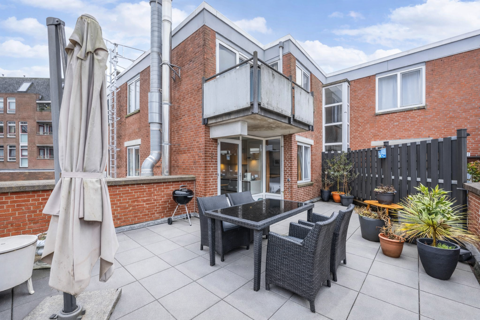 Via de keuken bereik je het royale dakterras van ca. 40 m², gelegen op het oosten. Een zeldzame luxe in het centrum: volop privacy, rust en ruimte voor een grote eettafel én een loungehoek. Hier verleng je je woonruimte naar buiten.