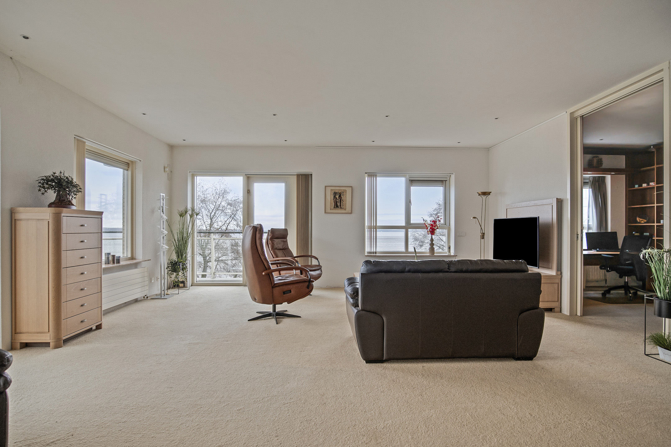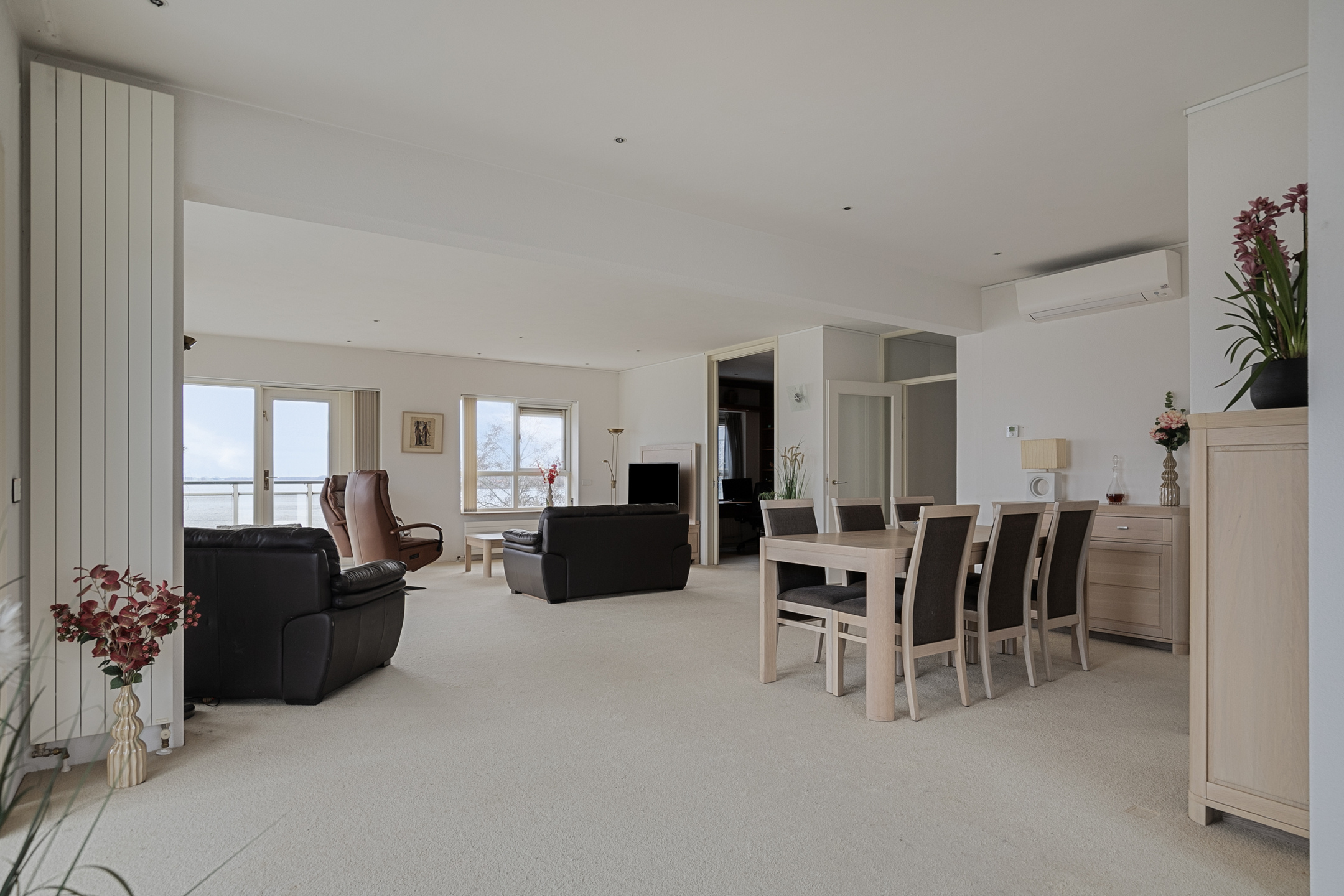 - Lichte woonkamer, vele ramen;