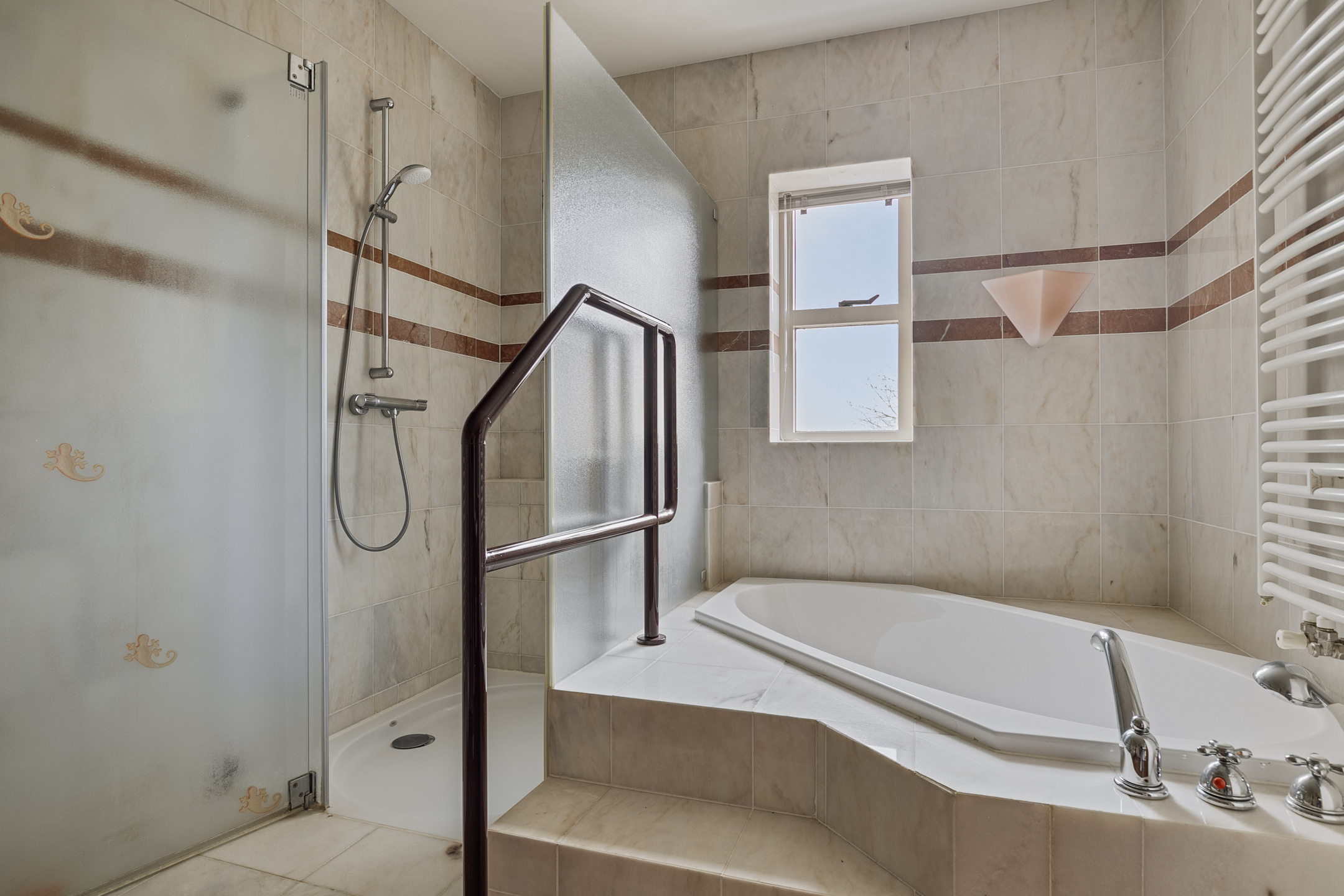 Via de hal bereikt u de gang naar de verschillende vertrekken. Vanuit hier bereikt u aan de rechterzijde de grote slaapkamer met vaste kastenwand en toegang tot de eigen badkamer. De badkamer is in een lichte kleurstelling en is voorzien van een douche, een groot ligbad met opstapje, een wastafel, een 2e toilet, handdoekradiatoren en badmeubels. U heeft daglicht en kunt ook natuurlijk ventileren. Aan de overzijde van de gang bevinden zich de 3e slaapkamer met tevens een eigen badkamer. De badkamer is voorzien van een douche, wastafel, handdoekradiator en badmeubel. U loopt via de deur door naar het separate toilet welke tevens te bereiken is vanuit de gang. Als u terug komt in de gang heeft u aan het einde de inpandige berg-/wasruimte met tevens de opstelling voor de cv-ketel en mechanische ventilatie.